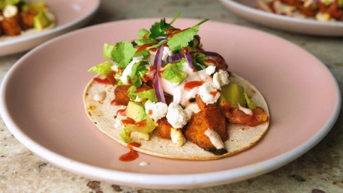 Gebackene Süßkartoffeln & Feta Tacos