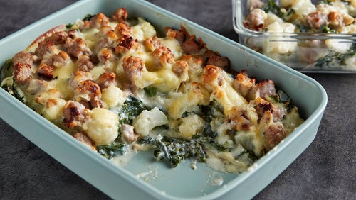 Blumenkohl Käse Würstchen Auflauf | Meal Prep Rezept