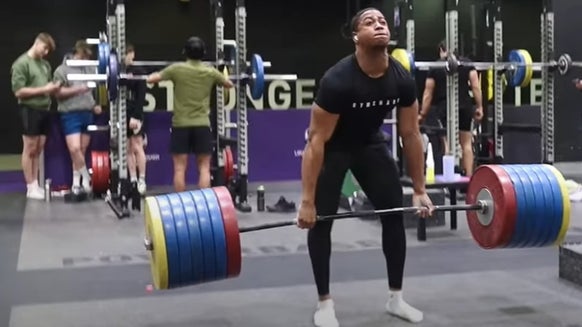 19-jähriger hebt 300 kg beim Kreuzheben, während das gesamte Gym dabei zusiehst