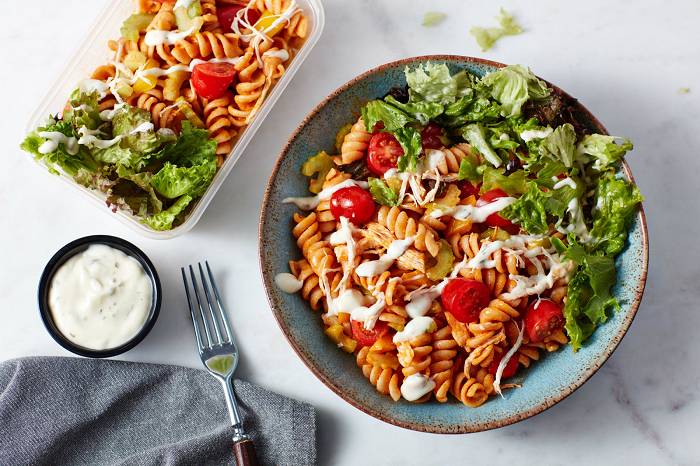 Möchtest du dein Mittagessen aufpeppen? Versuche dieses würzige und scharfe Buffalo Chicken Meal Prep Rezept. Vertraue uns: Buffalo-Sauce macht alles besser.