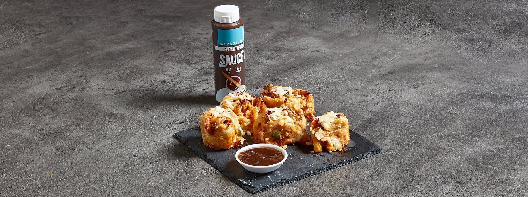 - Lasse die Pizzabrötchen ein paar Minuten abkühlen, bevor du sie vorsichtig ausschneidest. Mit reichlich zuckerfreier BBQ Sauce servieren und genießen!