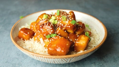 Wie wäre es mit knusprigem Tofu in Süß-Sauer-Sauce?...