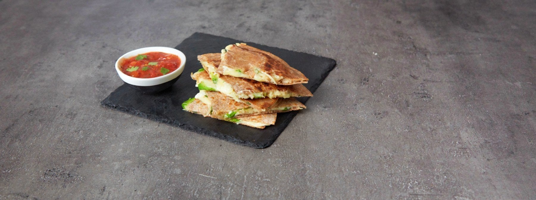 - Die Quesadillas in Viertel schneiden und mit Salsa oder einer anderen beliebigen Sauce servieren.