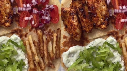 Freu dich auf saftiges und lecker gewürztes Hähnchen, Salat, ein paar Pommes und eine ordentliche Portion Tzatziki – du wirst es definitiv nicht bereuen.