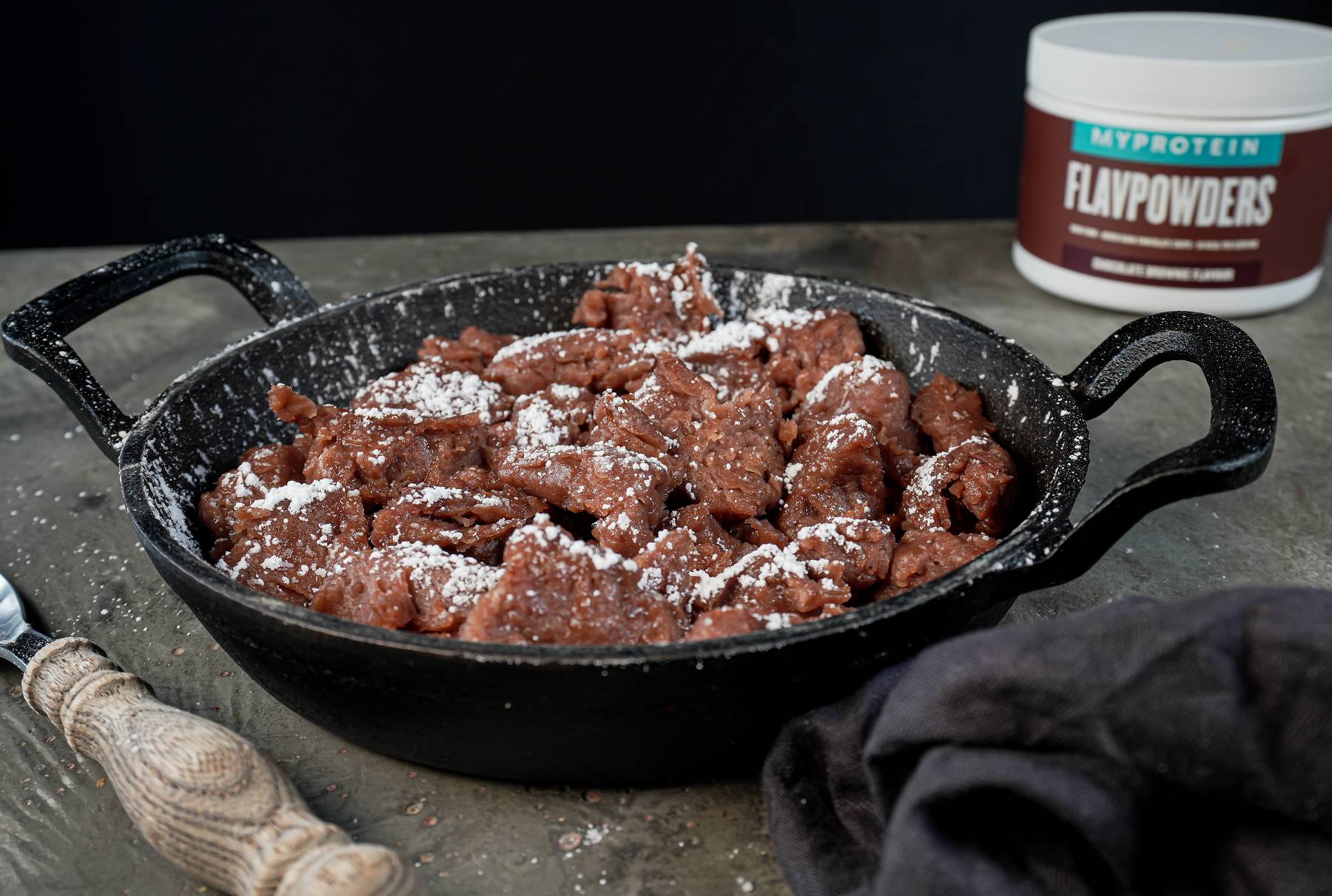 Zerteile den Teig in der Pfanne nun in kleine Stückchen.