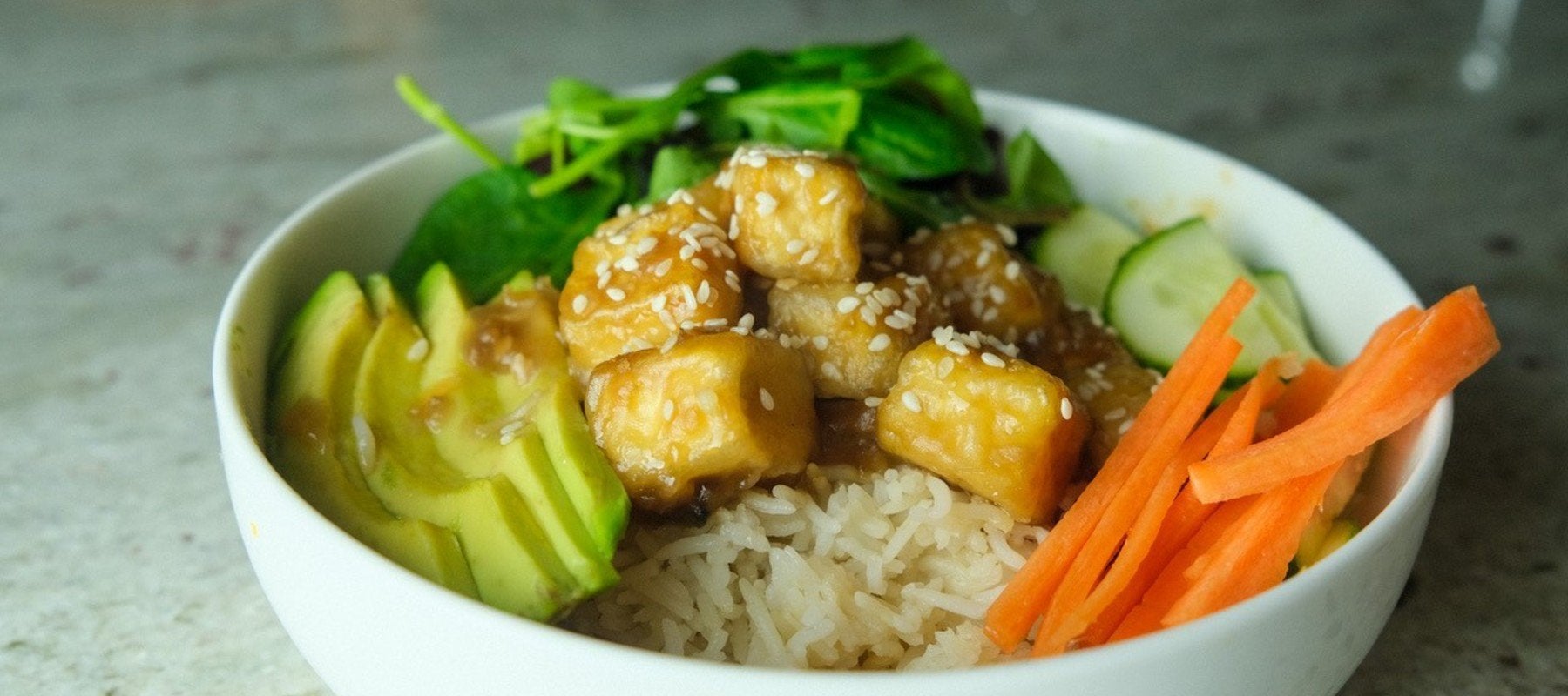 Er zeigt dir darin, wie unglaublich einfach es ist, schmackhafte und knusprige Tofu-Stückchen mit einem simplen Maismehl-Überzug und einer würzigen Teriyaki-Sauce zu kreieren, die ideal ist, um ein gesundes Mittagessen für unterwegs zu zaubern.