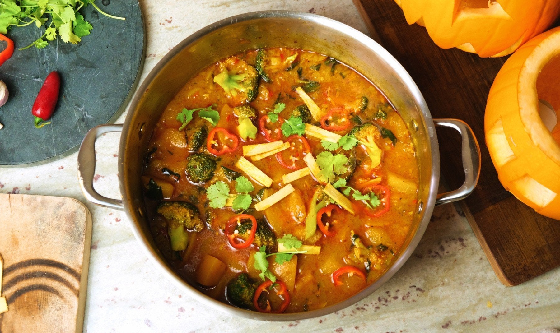 Du suchst nach einer leckeren Möglichkeit, um deine Kürbisse aufzubrauchen? Niall Kirkland's Kürbis Thai Red Curry ist eine köstliche und herzhafte Wintermahlzeit, die dich in den kalten und dunklen Nächten wärmen wird.