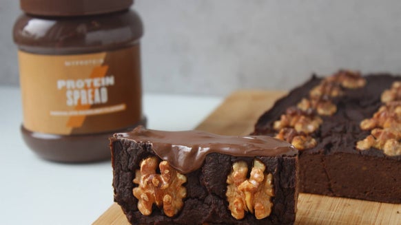 Mit Erdnussbutter gefüllte Protein Pancakes