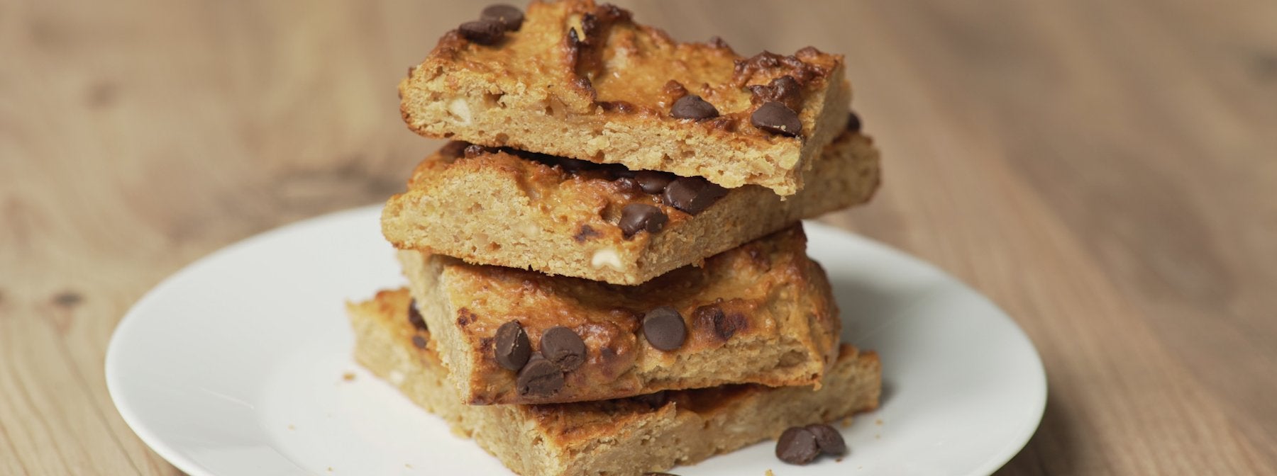 Backe die Blondies etwa 45 Minuten lang oder bis sie an den Rändern goldbraun sind. Schneide dann die veganen Blondies in Quadrate und genieße sie!
