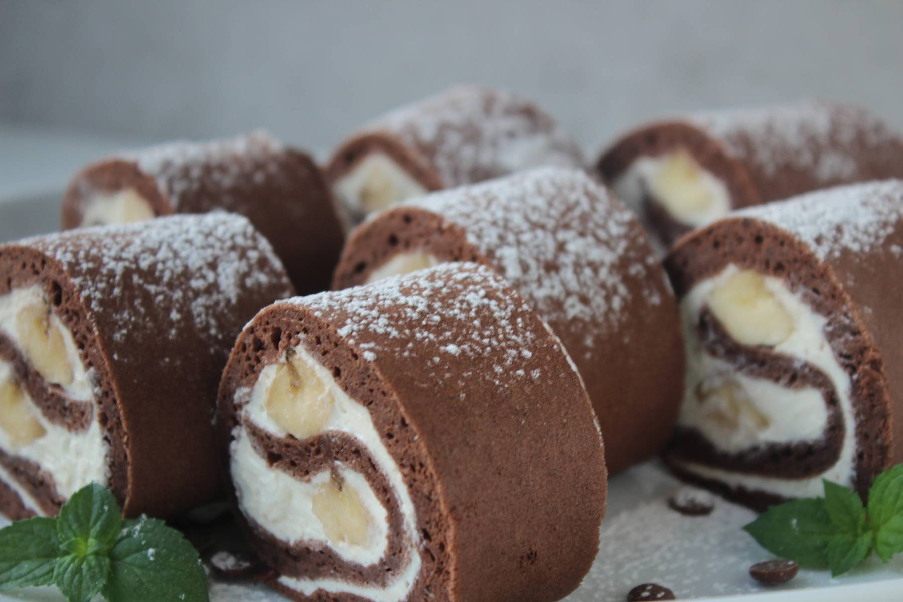 Proteinreiche Schoko Bananen Biskuitrolle