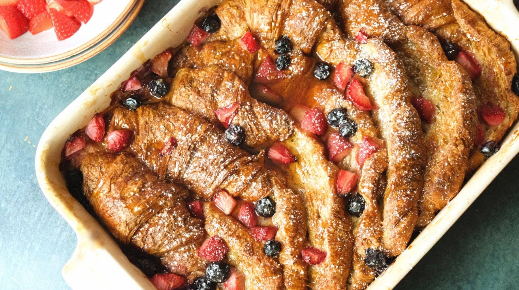 Als ob French Toast nicht schon köstlich genug wäre, hat Niall Kirkland die Sache auf ein ganz neues Level gebracht, indem er es in einen riesigen Croissant-Auflauf verwandelt hat.