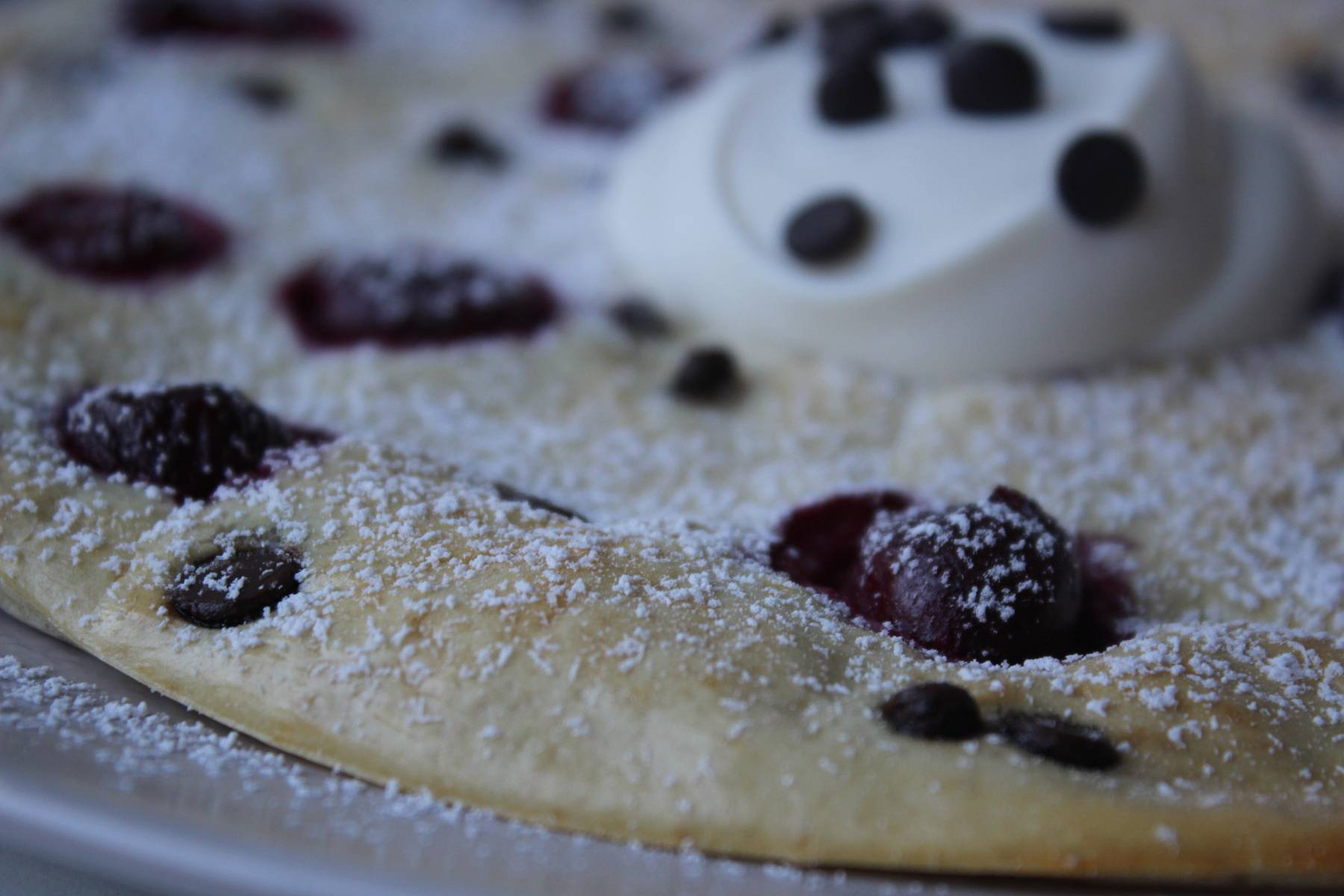 - Die Quarkcreme dann nur noch auf den fertig gebackenen Ofen-Pfannkuchen platzieren und genießen.
