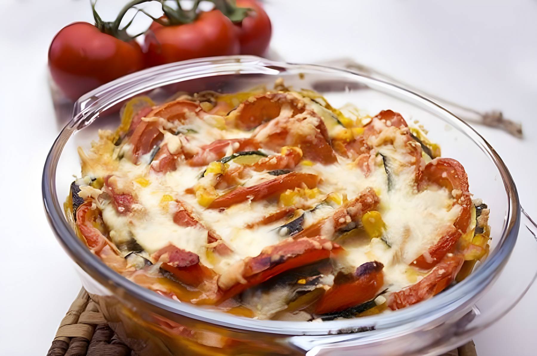Ein vegetarisches Gratin mit einer köstlichen Tomatensoße.