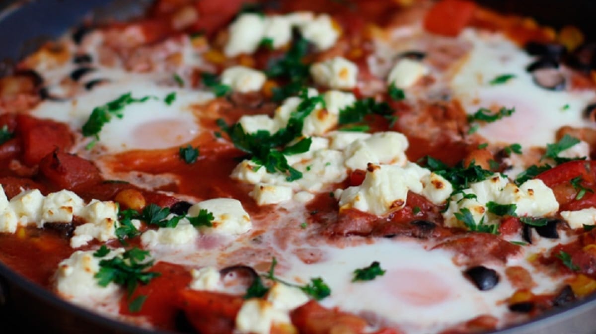 - Streut jetzt den Feta über das Gericht. Die Pfanne mit Inhalt jetzt für noch ca. 8-10 Minuten in den Ofen geben. Der Käse soll leicht anbräunen bzw. das Ei noch etwas nachstocken.
