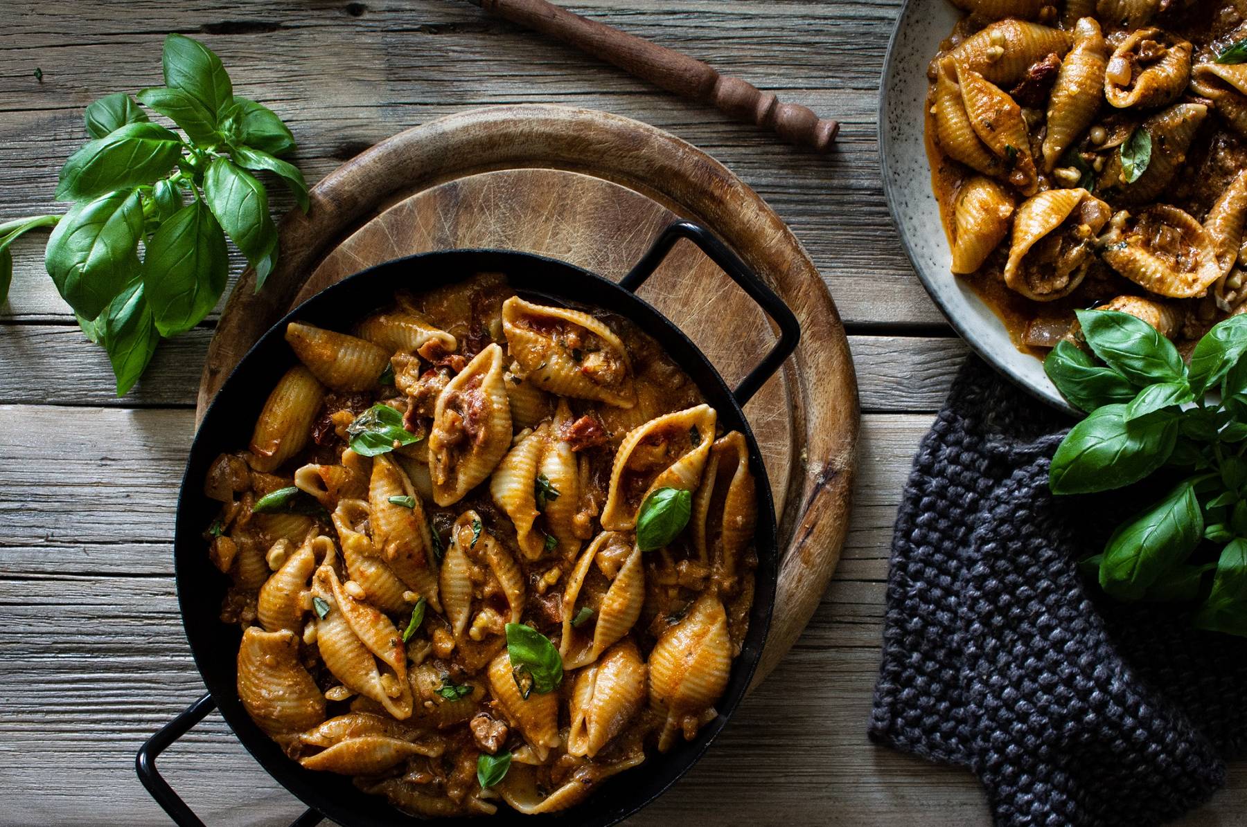 Shellnudeln mit Walnusshack | Veganes Meal Prep