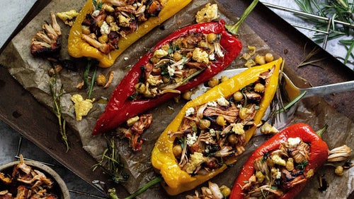 Gefüllte Jackfrucht Paprika mit gerösteten Kichererbsen