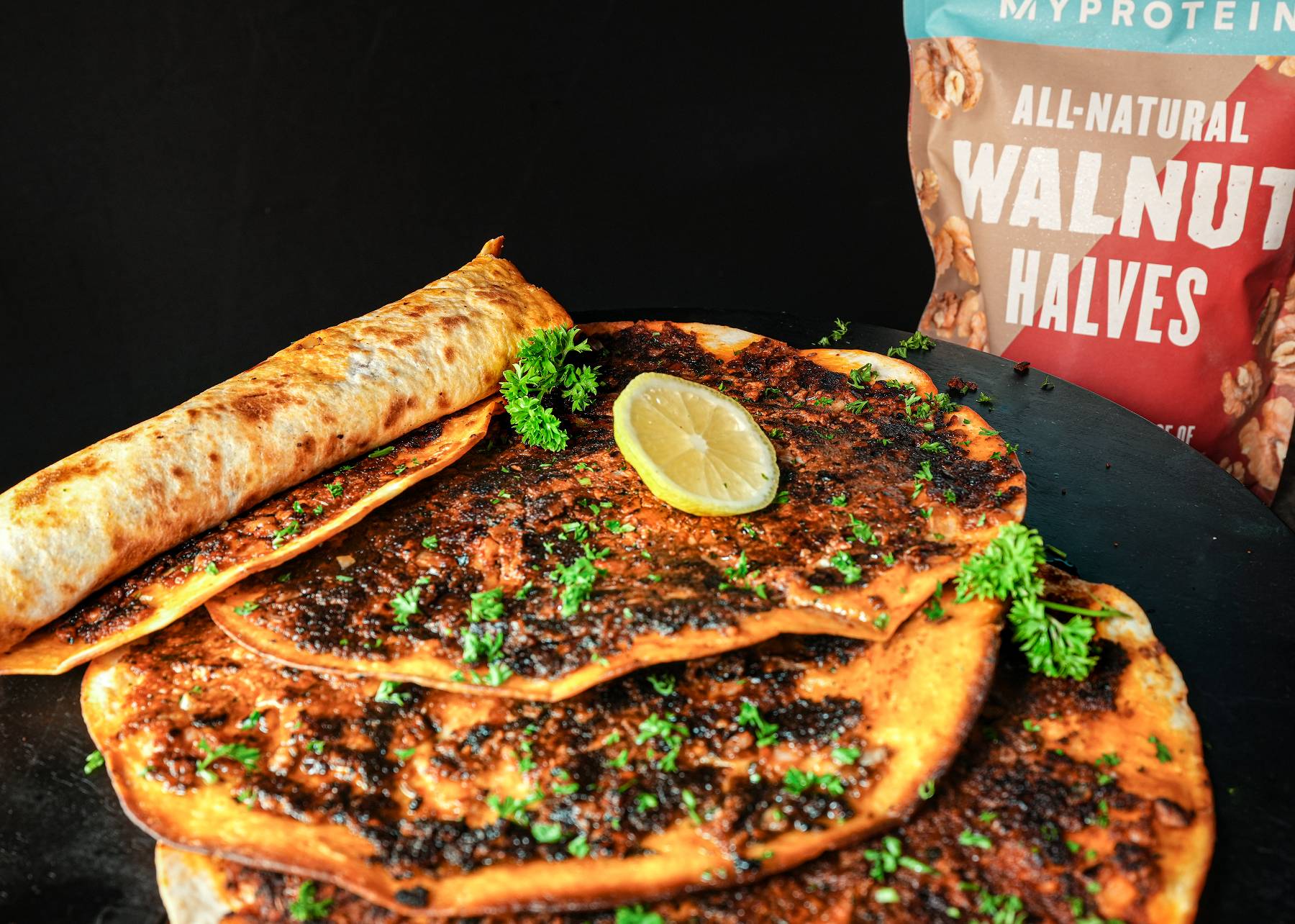 Gib die fertigen Lahmacuns auf einen Teller, damit sie ein wenig abkühlen können. Zum Schluss kannst du sie noch mit Zitronensaft beträufeln, einrollen und dann genießen!