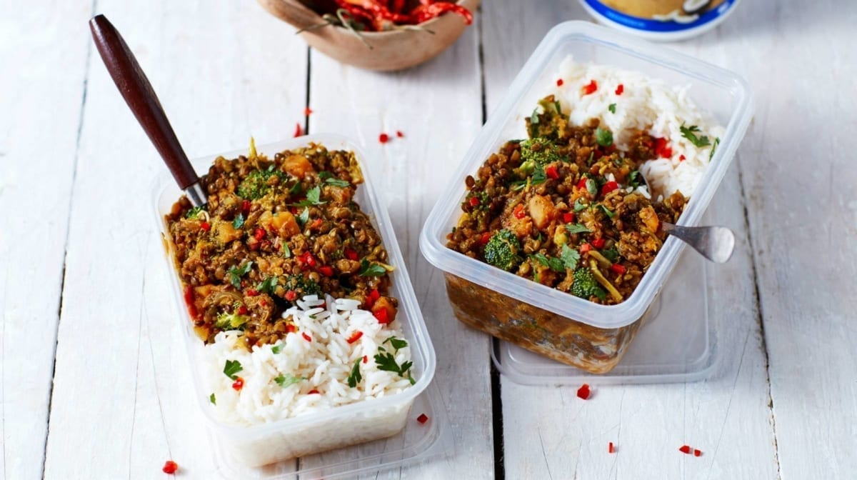 Koche deine Mahlzeiten in größerer Menge vor. Dieser geschmackvolle, vegan-freundliche, proteinreiche Linsen Eintopf ist ideal für deine Meal Prep.
