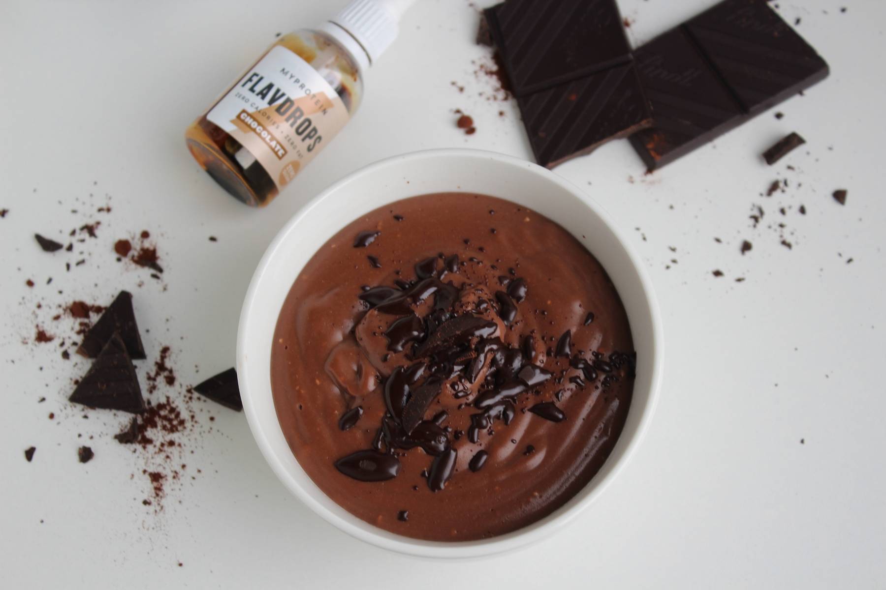 20g Impact Whey Protein, Cremige Schokolade (oder Vegane Protein Mischung) ein paar Tropfen Flavdrops, Schokolade
