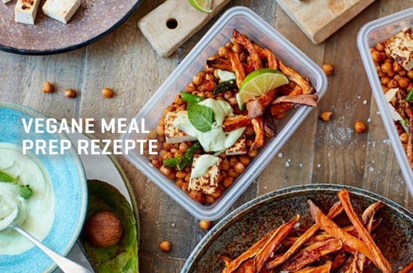 die nächsten 3 Tage mit leckerem, veganem Essen versorgt – scharfe geröstete Kichererbsen und Spargel mit Tofu und Maca-Süßkartoffel-Pommes und dazu Avocado-Dip.