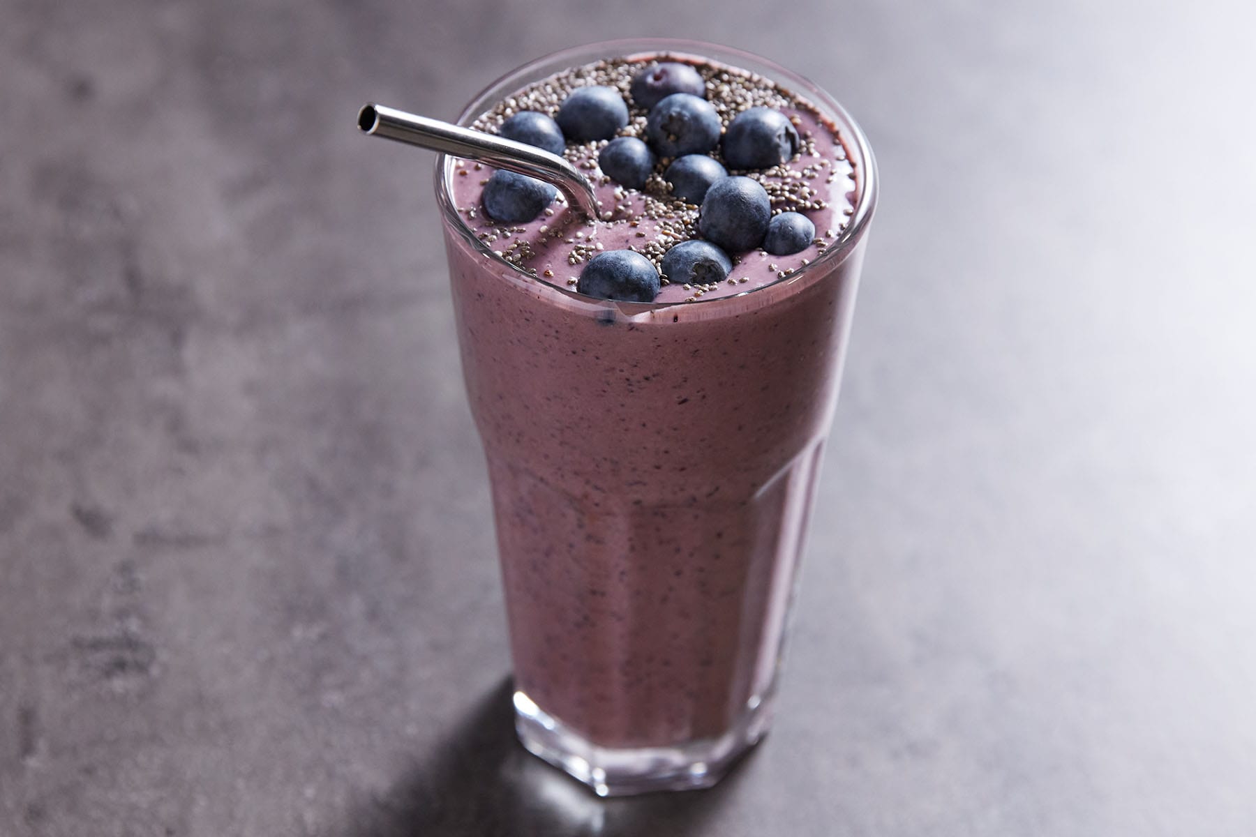 - Genieße den energiegeladenen Smoothie, indem du ihn in ein Glas gießt oder einen Shaker gibst, wenn du ihn unterwegs trinken willst.