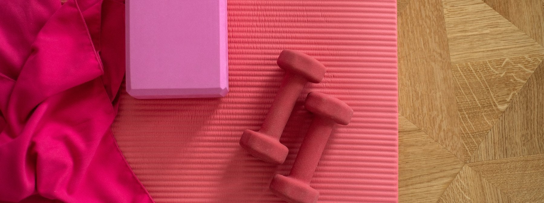 Du kannst deinen Platz für die Workouts entweder durch Kurzhanteln, kleineres Equipment oder ganz einfach einer Matte auf dem Boden kennzeichnen.