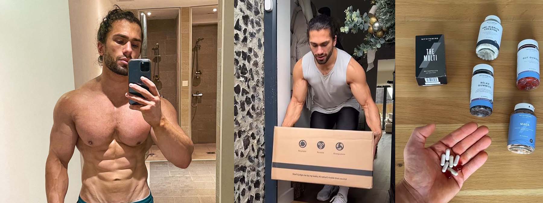 In einem seiner Instagram-Posts zeigte uns Marino, welche Supplemente er bei Myprotein bestellt hat. Und Marino ist niemand, der sich zurückhält – er holt sich all die guten Sachen, darunter: