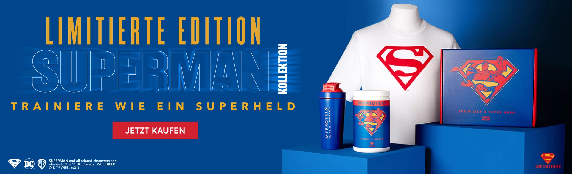 Oder genieße einen Schluck süßes Acerola Kirsche Clear Whey Isolat im limitierten Superman Shaker - und bringe dein Training auf Superhelden-Niveau.