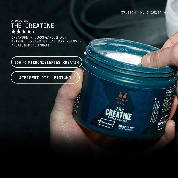 The CreatineRein, bewährt und kraftvoll. The Creatine liefert pro Portion 5 g Monohydrat – für mehr Kraft, Ausdauer und Muskelwachstum genau dann, wenn es zählt.